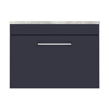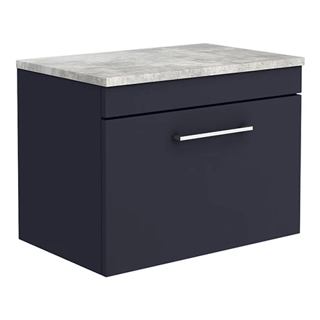The contemporary matt blue Arezzo furniture range, with it’s clean lines this vanity unit is perfect for renewing the style in any bathroom. Designed for use with a counter top basin (not included), the matt finish bellato grey worktop sits perfectly on top and all pipework is neatly concealed within the unit. A soft closing drawer provides generous storage space for your toiletries, helping to keep your bathroom clutter free. Features a eye-catching stylish matt blue finish with a on-trend modern polished chrome square bar handle.
