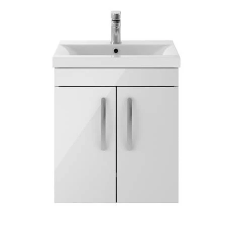 The Brooklyn White modular furniture range combines up to date looks with practical storage. Features 2 soft close doors and provides plenty of storage space for toiletries, the Brooklyn wall hung vanity unit is perfect for adding modern style to any bathroom. This high quality white gloss vanity unit is supplied with a smooth white gloss vitreous china basin. All units are provided with quality matt chrome handles.