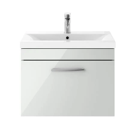 (1) Wall Hung 1 Drawer Vanity Unit – Gloss Grey Mist (600 x 383mm)