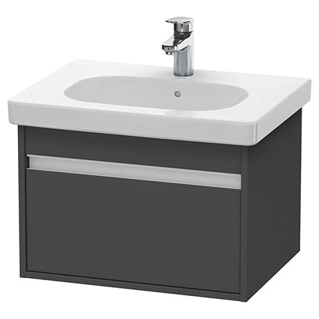 Modern and versatile, the Ketho 600mm 1-Drawer Wall Mounted Vanity Unit with D-Code Basin in Graphite Matt is flexible enough to suit any modern bathroom setting. Its practical wall hung design maximises space where you need it most while the single drawer provide plenty of storage space. The D-Code basin has plenty of surface space for toiletries and comes with a single tap hole and overflow.