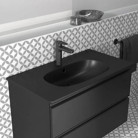 Balance is everything with the Tesi 800mm 2-Drawer Wall Hung Vanity Unit. From the slender curves of the furniture to the flexibility of the fittings, it’s effortlessly designed, giving you precision that can work in everything from family bathrooms and en-suites to cloakrooms and smaller spaces. The unit features 2 adjustable drawers with soft closing system and built-in handles. The silk black finish makes for a sleek, premium look, while bringing elegance.