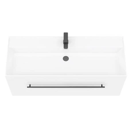 - Quality modern basin with overflow to complement the minimalist cabinet and handle