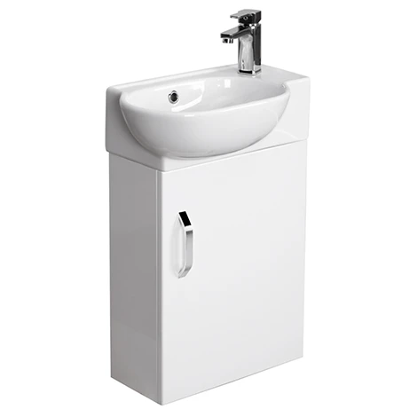 Add a modern touch to your bathroom with the eye-catching Valencia Perla range. The space-saving Valencia Perla gloss white compact wall hung basin unit comes with a high quality curved offset ceramic basin with a right hand positioned tap hole. The Valencia Perla provides you with a handy space-saving solution for your cloakroom or en-suite, helping to keep your bathroom clutter free.