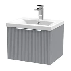 Venice Fluted 500mm Grey Vanity Unit – Wall Hung Single Drawer Unit with Chrome Handle