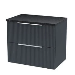 The Venice Fluted 600mm Satin Anthracite 2-Drawer Wall Hung Vanity Unit with Sparkling White Worktop features an eye-catching design that will create a stylish statement in your bathroom. It has ample storage with two large soft-closing drawers to keep your toiletries organised. The worktop sits perfectly on top and all pipework is neatly concealed within the unit. Manufactured from quality materials, this vanity unit comes fully assembled and is finished in a grey Anthracite.