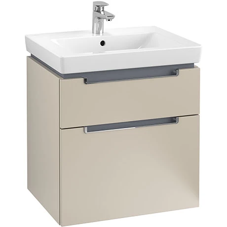 Subway 2.0 bathroom furniture by Villeroy & Boch brings diversity to the cosy bathroom. This Soft Grey Wall Hung 2-Drawer Vanity Unit has generous storage space thanks to clever interior arrangement and its shock-absorbing, soft-closing drawers that slows down the drawer and automatically closes it, slowly and silently. With a range of colours, the modern design of the bathroom furniture by Subway 2.0 gives every bathroom a fresh and natural look.